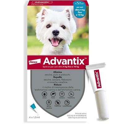 Hanno un effetto repellente e letale contro le malattie trasmesse da pulci (dipilidiosi), zecche (borreliosi, babesiosi, ehrlichiosi), mosche (leishmaniosi), zanzare (malattia del cuore).ADVANTIX può essere integrato in un programma di lotta alla DAPP (Dermatite allergica da pulci).