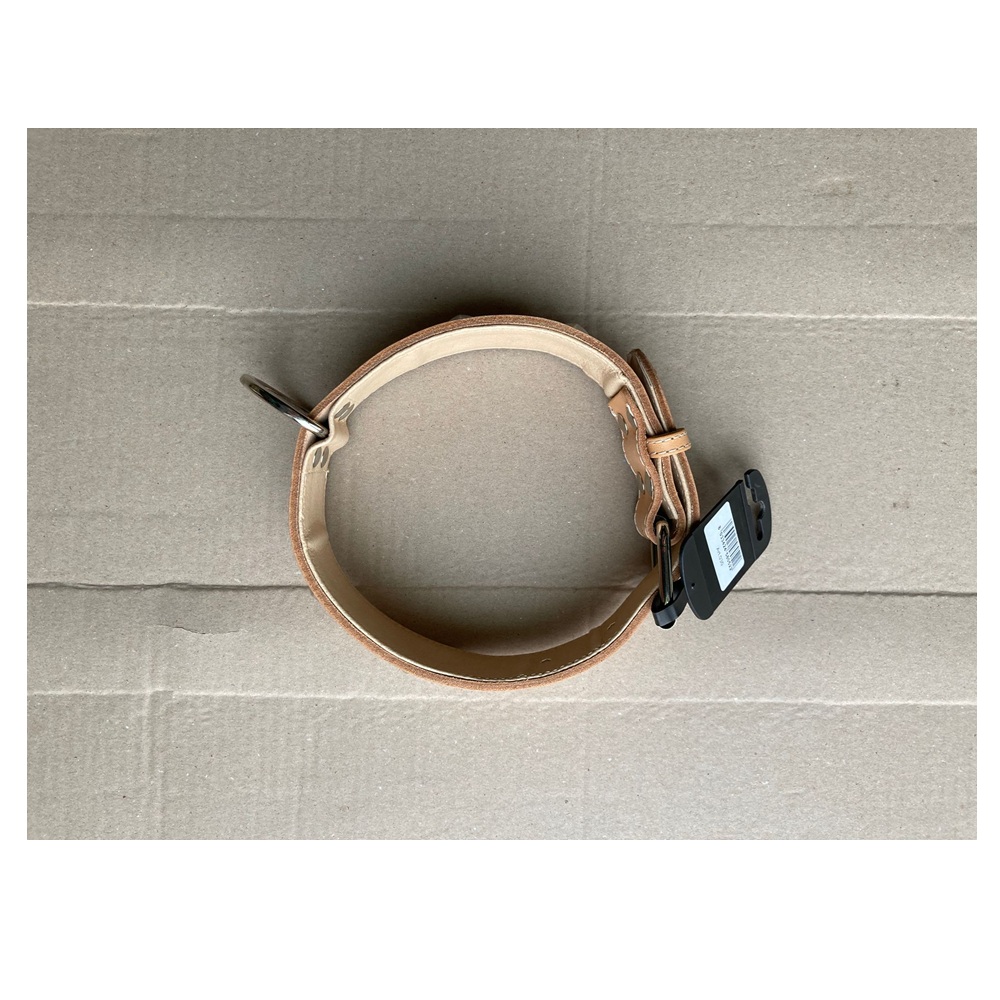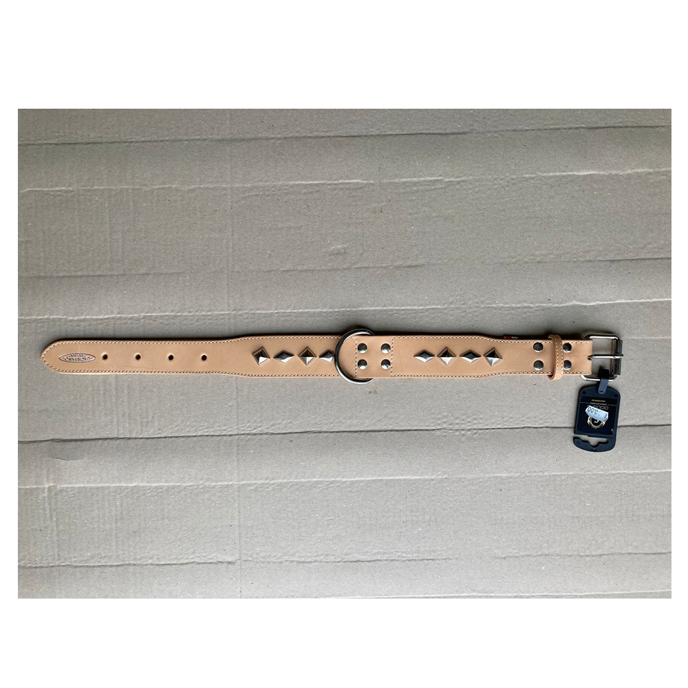 Collare in Cuoio Sagomato con Salvapelo e Borchie a Piramide Beige