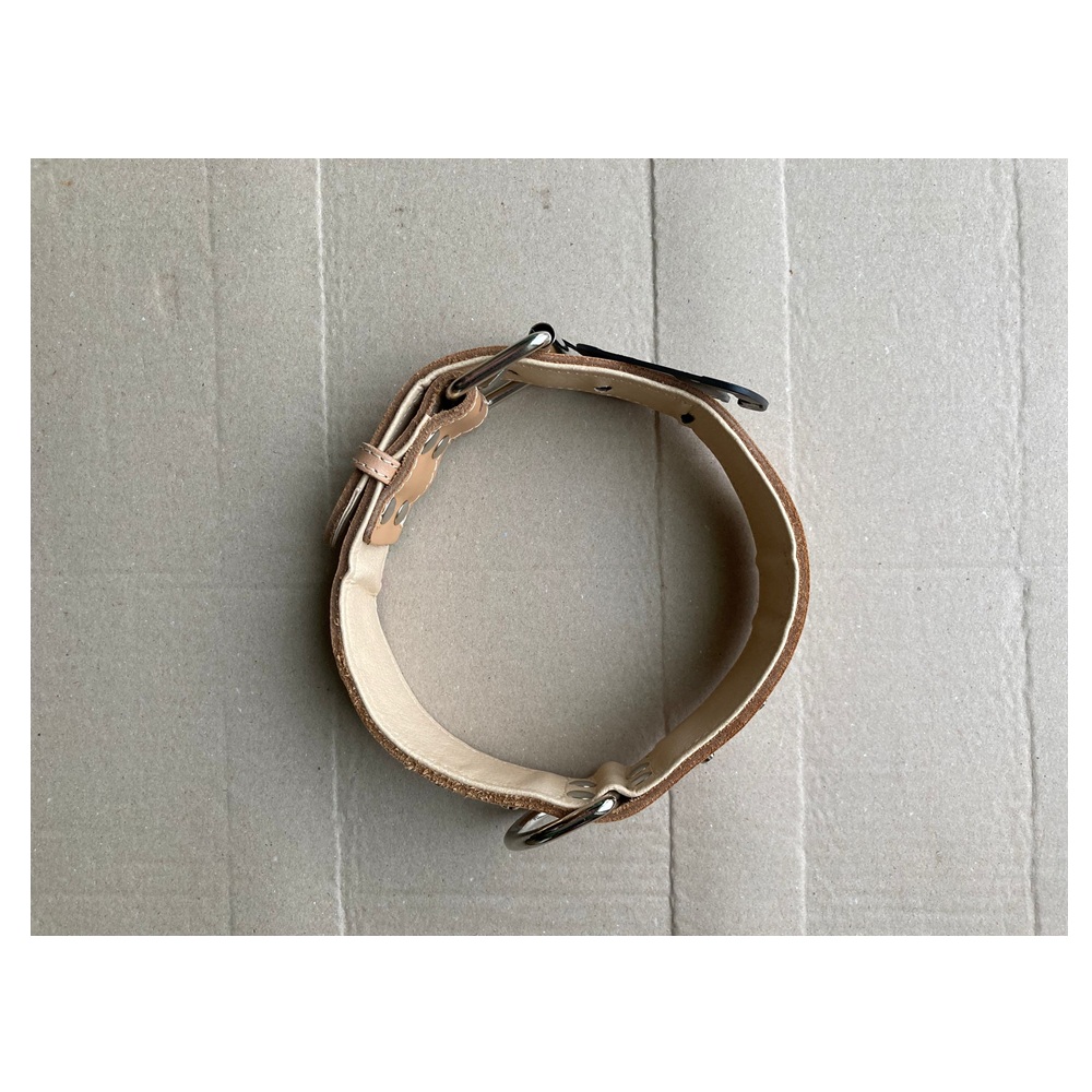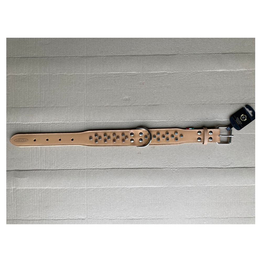 Collare in Cuoio Sagomato con Salvapelo e Borchie Coniche Beige