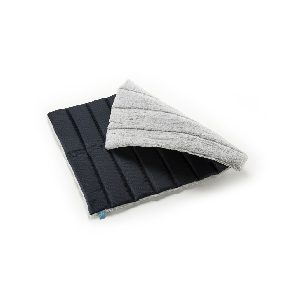 Coperta rettangolare per trasporto metà in tessuto Oxford tinta unita, con trama a nido d'ape waterproof, e metà in soffice pelliccetta con fibbia e comoda maniglia. Imbottita con morbida fibra 100% poliestere.