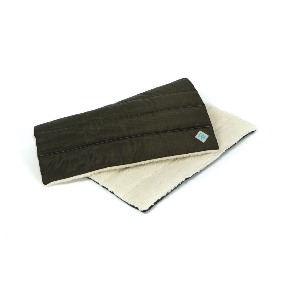 Coperta rettangolare per trasporto metà in tessuto Oxford tinta unita, con trama a nido d'ape waterproof, e metà in soffice pelliccetta con fibbia e comoda maniglia. Imbottita con morbida fibra 100% poliestere.