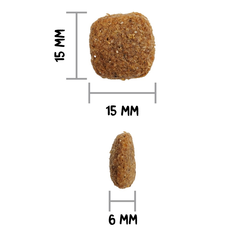 Agnello 37 % (agnello disidratato 27 %, agnello fresco* 10 % min. prima dell’estrusione), frumento integrale* (18 %), mais intero* (13 %), riso integrale* (8 %), piselli interi* (8 %), grasso di avicolo (preservato con antiossidanti naturali), polpa di barbabietola, mela* (1 %), semi di lino* (1 %), olio di salmone (preservato con antiossidanti naturali), lievito di birra* (0,5 %), frutto e mannano oligosaccaridi, piante aromatiche 0,02 % (finocchio*, echinacea*, timo*), yucca shidigera.