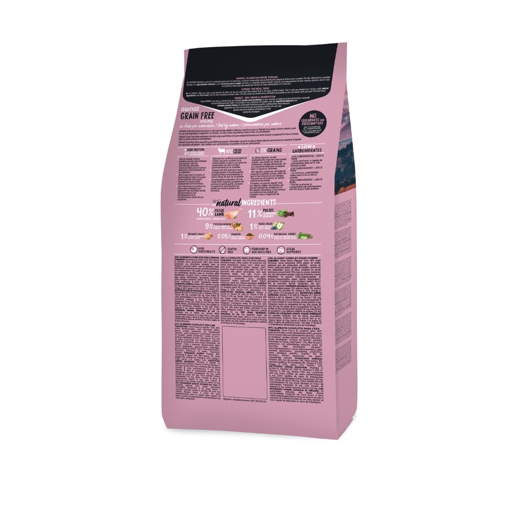 Agnello fresco* (min. 40% prima dell’estrusione), maiale disidratato (22%), grasso avicolo (preservato con antiossidanti naturali), radici di manioca* (7%), piselli interi* (7%), agnello disidratato (7%), baccello di carruba* (4%), patata disidratata* (2%), lievito di birra* (1%), proteine idrolizzate di pollo, mela* (1%), olio di pesce (conservato con antiossidanti naturali), polpe di barbabietola, erba medica disidratata*, sal gemma*, frutto e mannano oligosaccaridi, alghe marine disidratate* (500 mg/kg), glucosammina (500 mg/kg), yucca schidigera, condroitina solfato (100 mg/kg), mirtilli* (100 mg/kg), timo* (80 mg/kg), fiore di camomilla* (80 mg/kg), finocchio* (80 mg/kg), echinacea* (80 mg/kg), tè verde* (80 mg/kg). *INGREDIENTI NATURALI